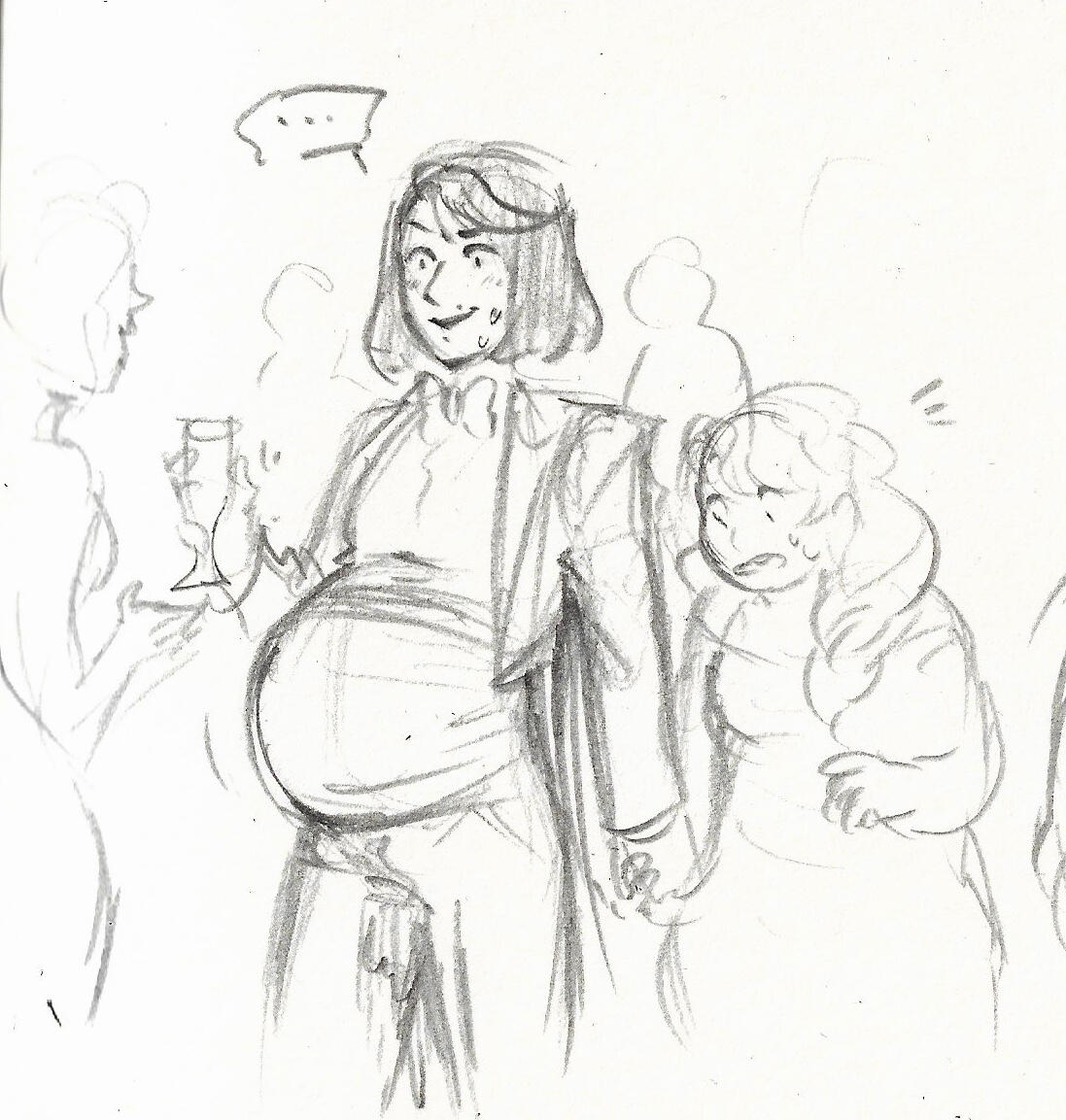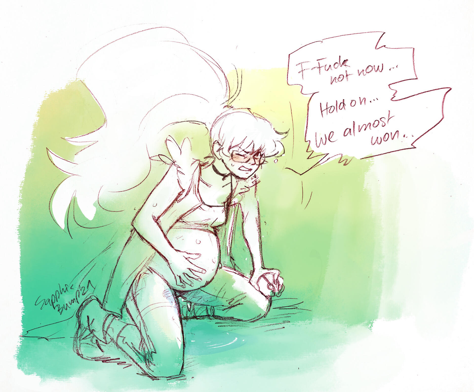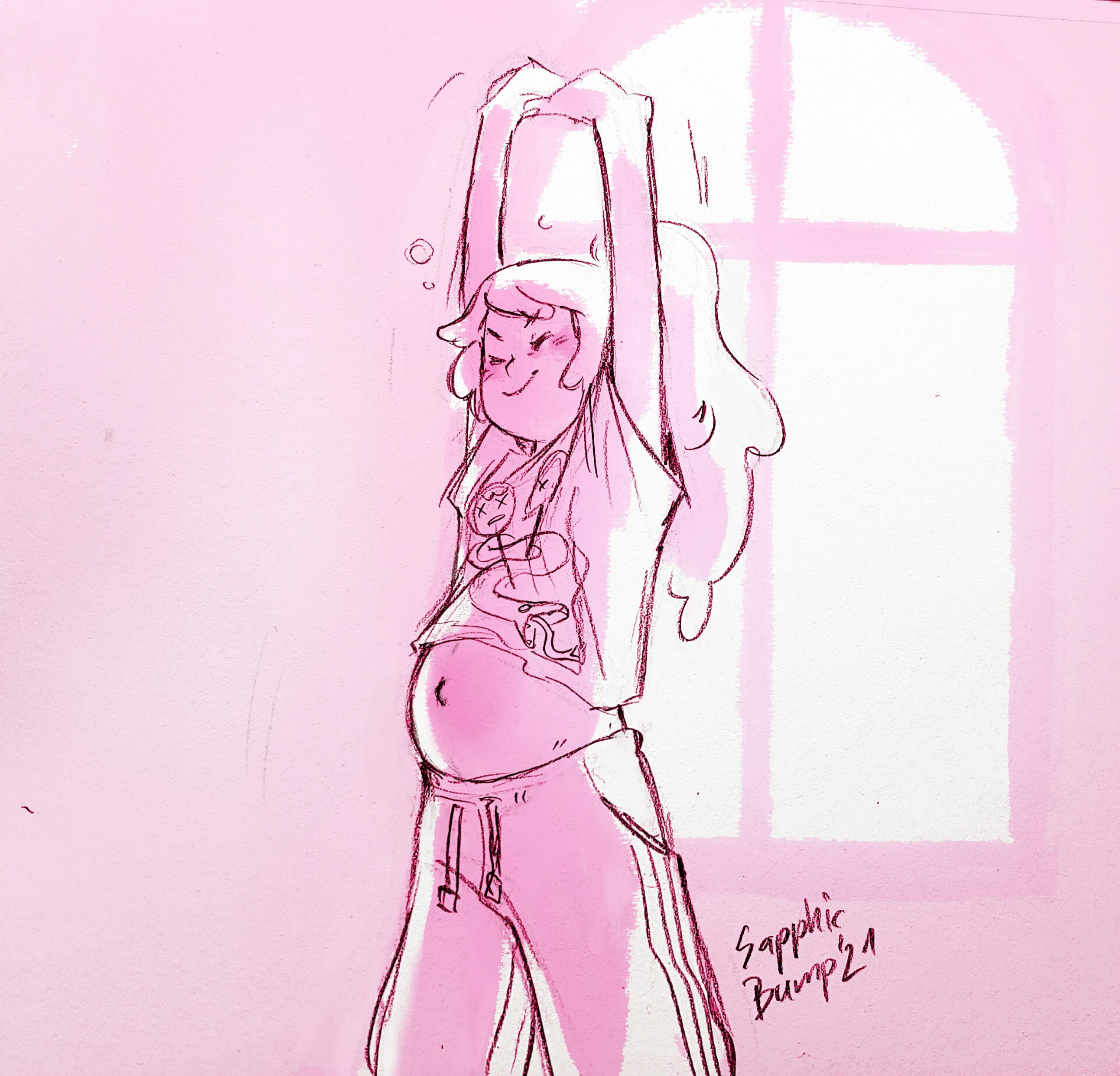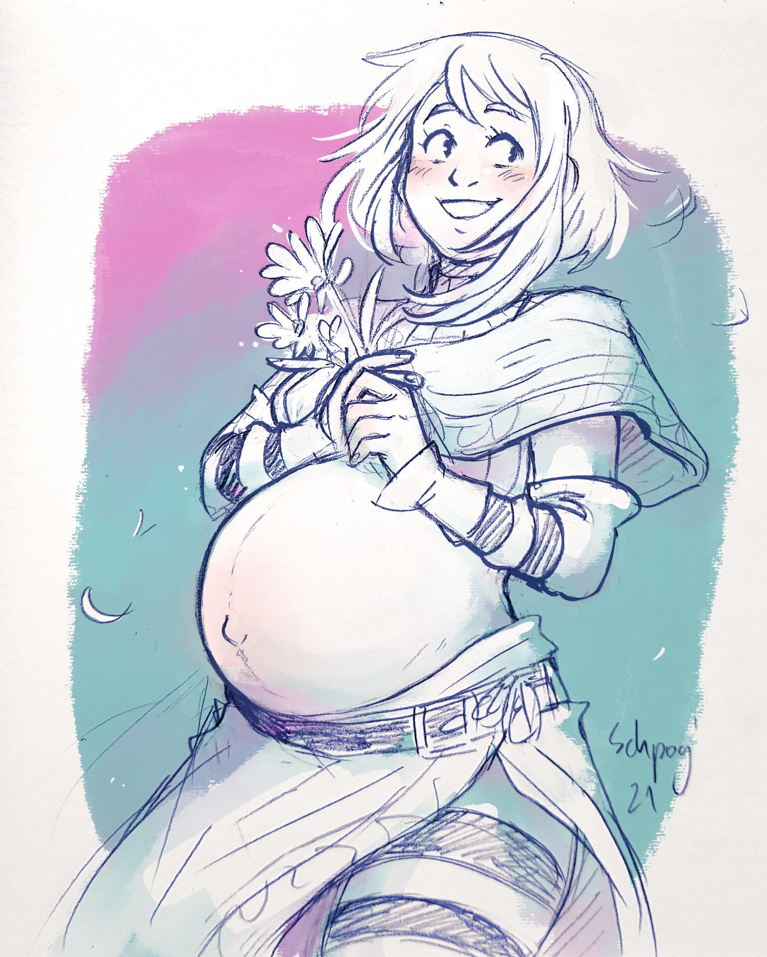 A lovechild of my livestream viewers and my partner, basically? It's my girlfriend Rose/Glasmond pregnant, usually in different AUs.So far, these consist of: