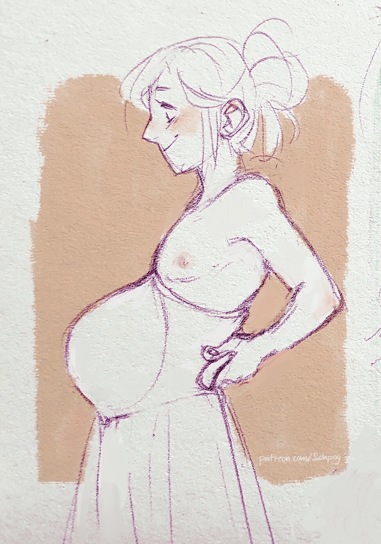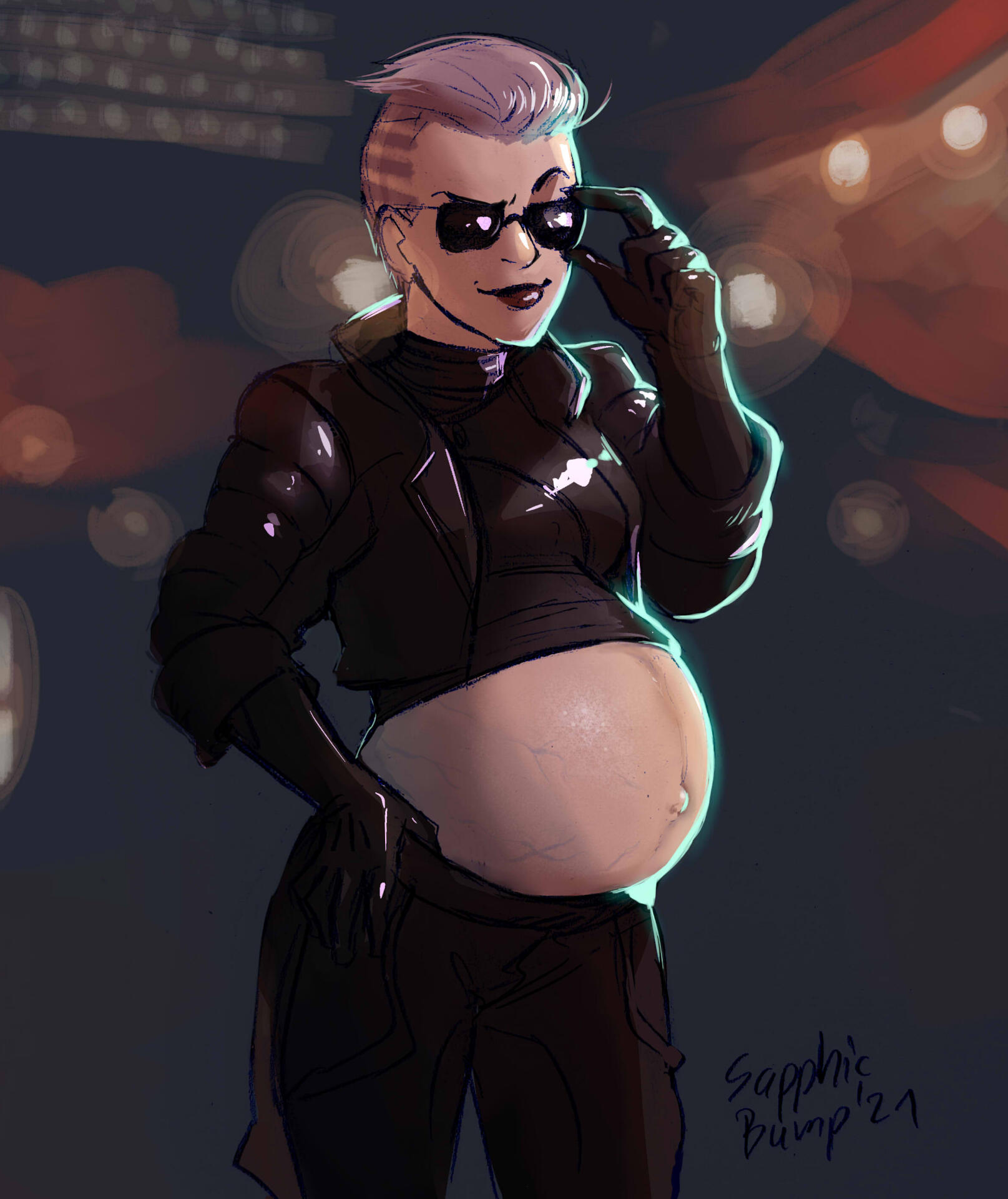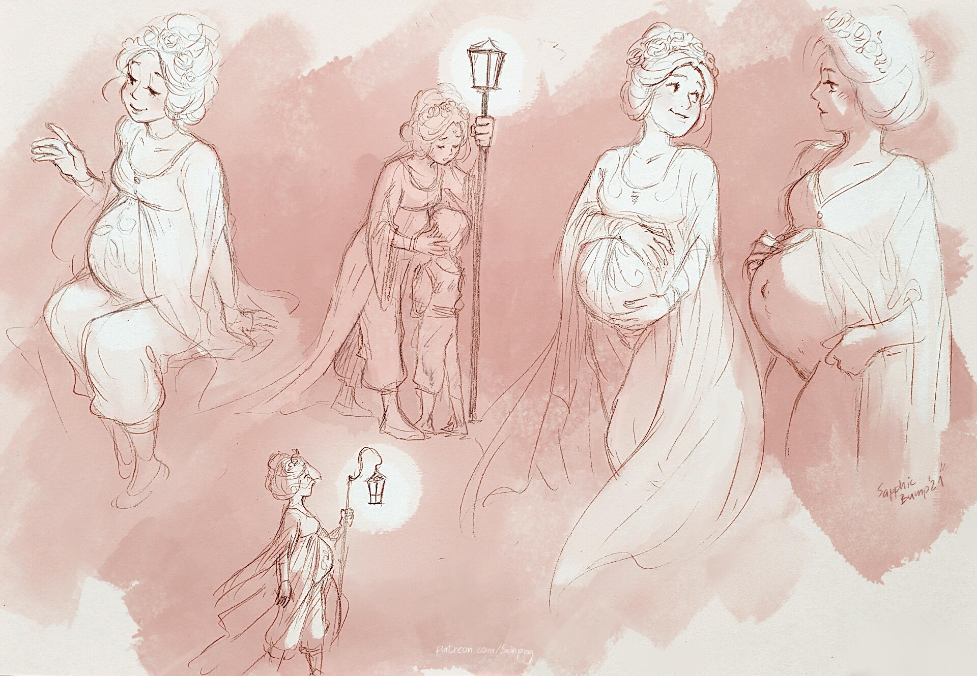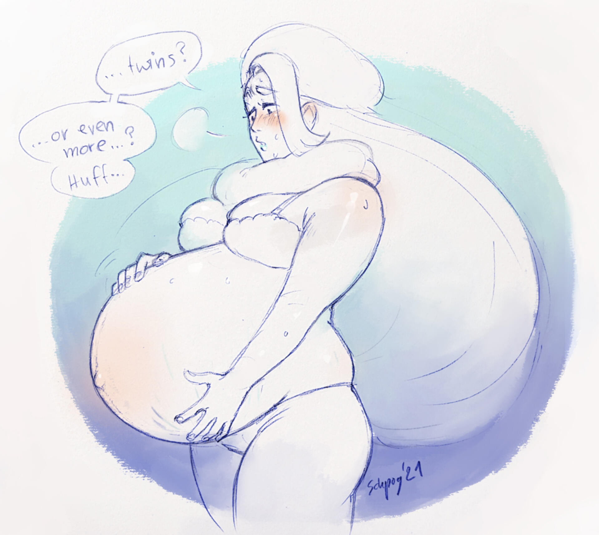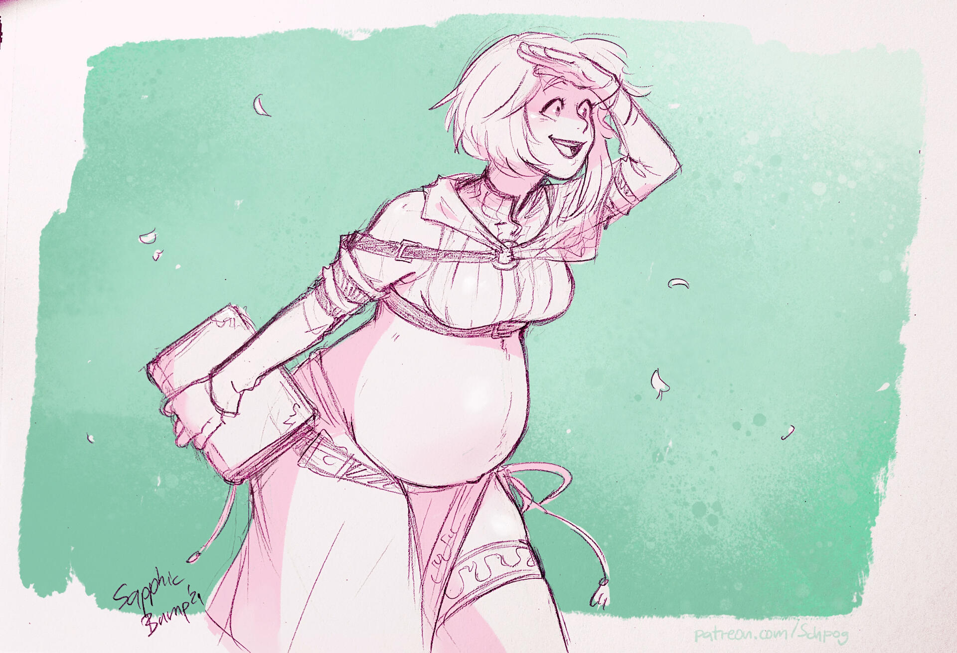 A lovechild of my livestream viewers and my partner, basically? It's my girlfriend Rose/Glasmond pregnant, usually in different AUs.So far, these consist of: