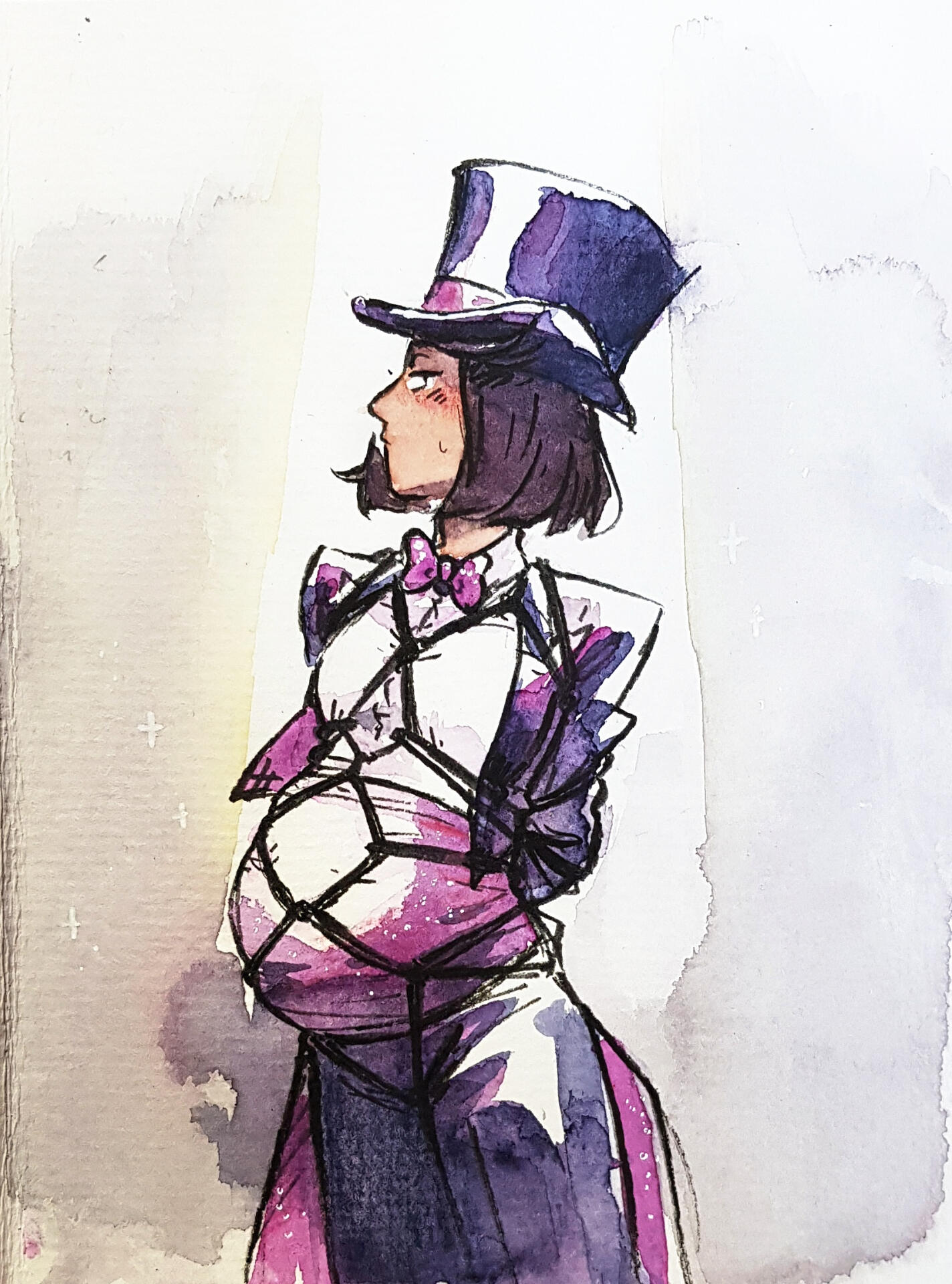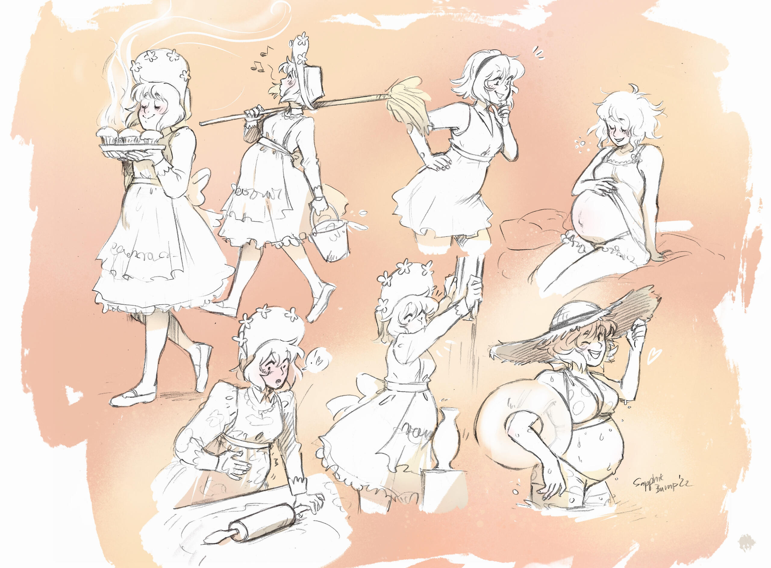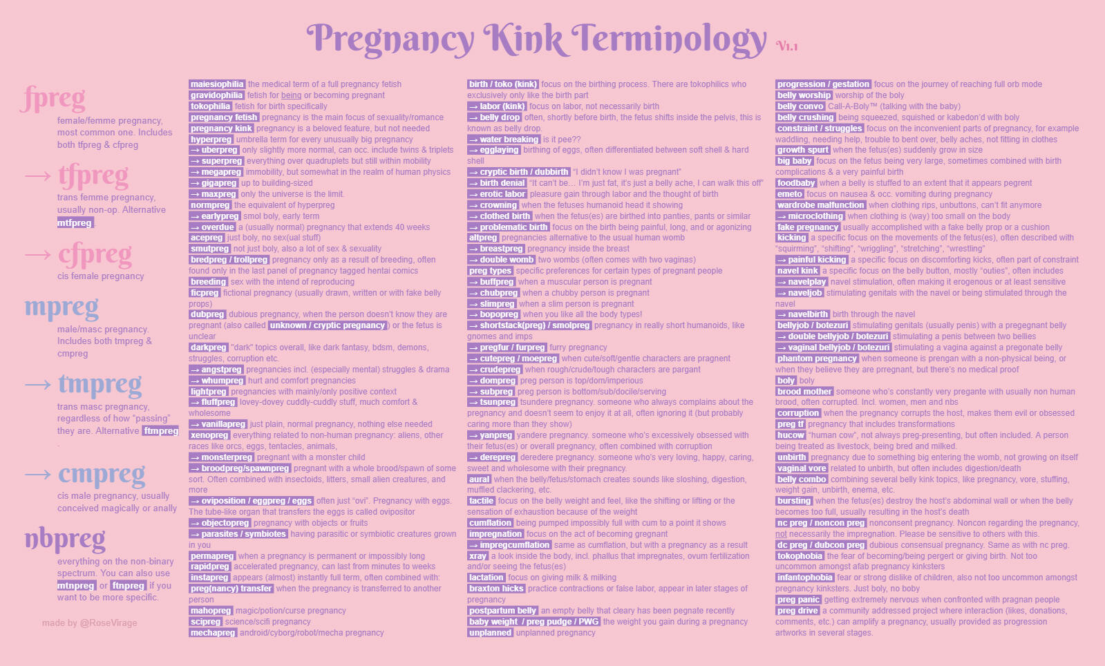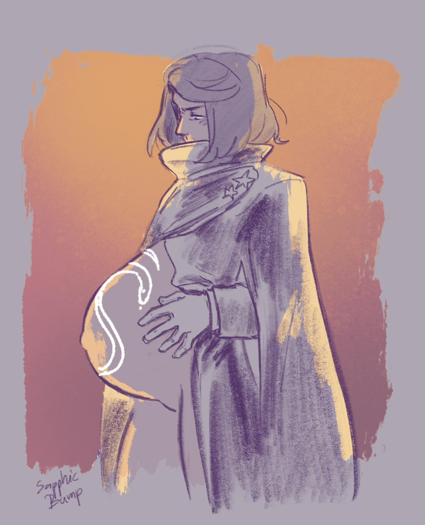 A lovechild of my livestream viewers and my partner, basically? It's my girlfriend Rose/Glasmond pregnant, usually in different AUs.So far, these consist of: