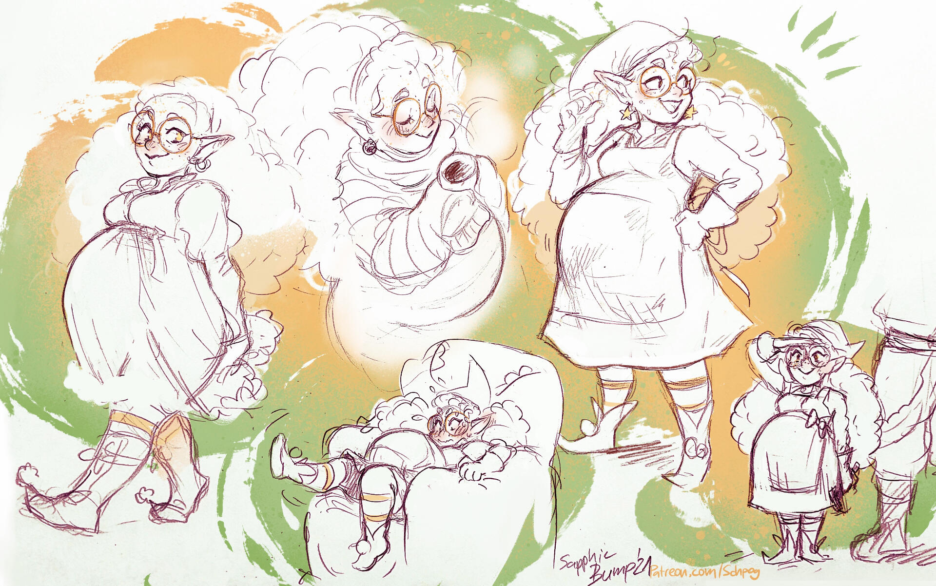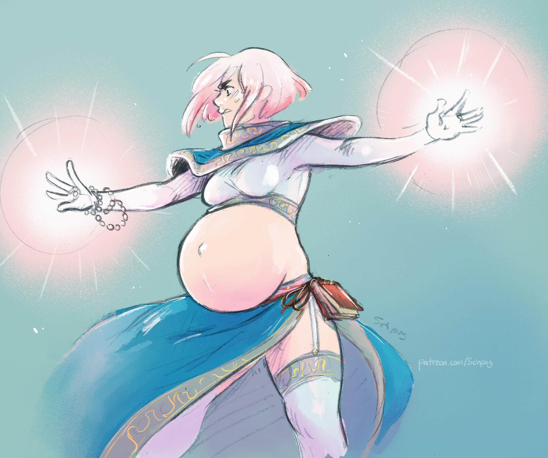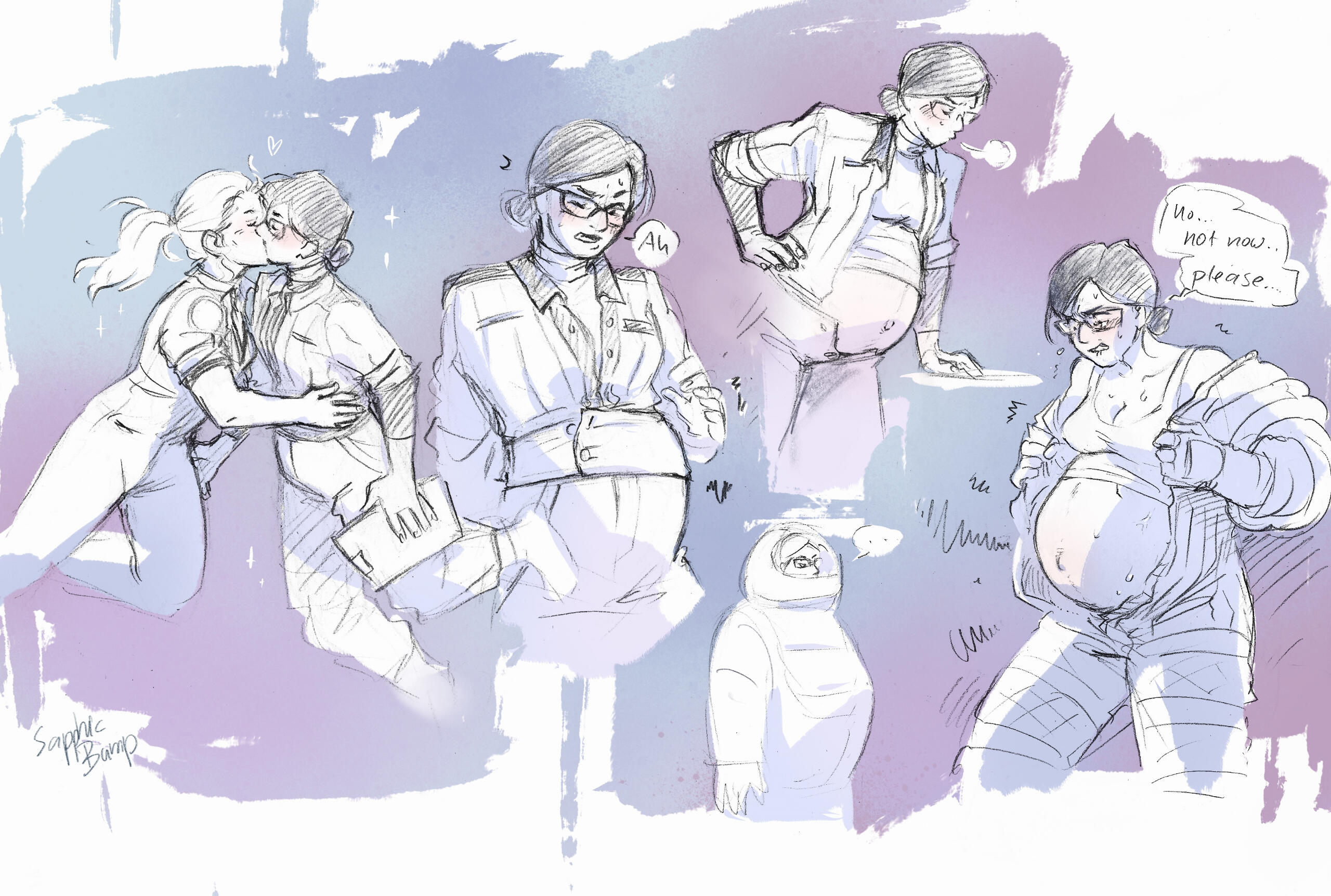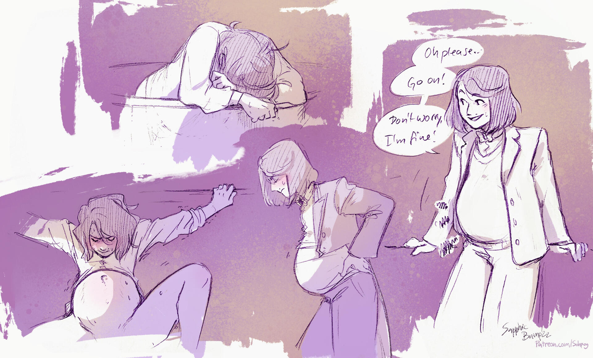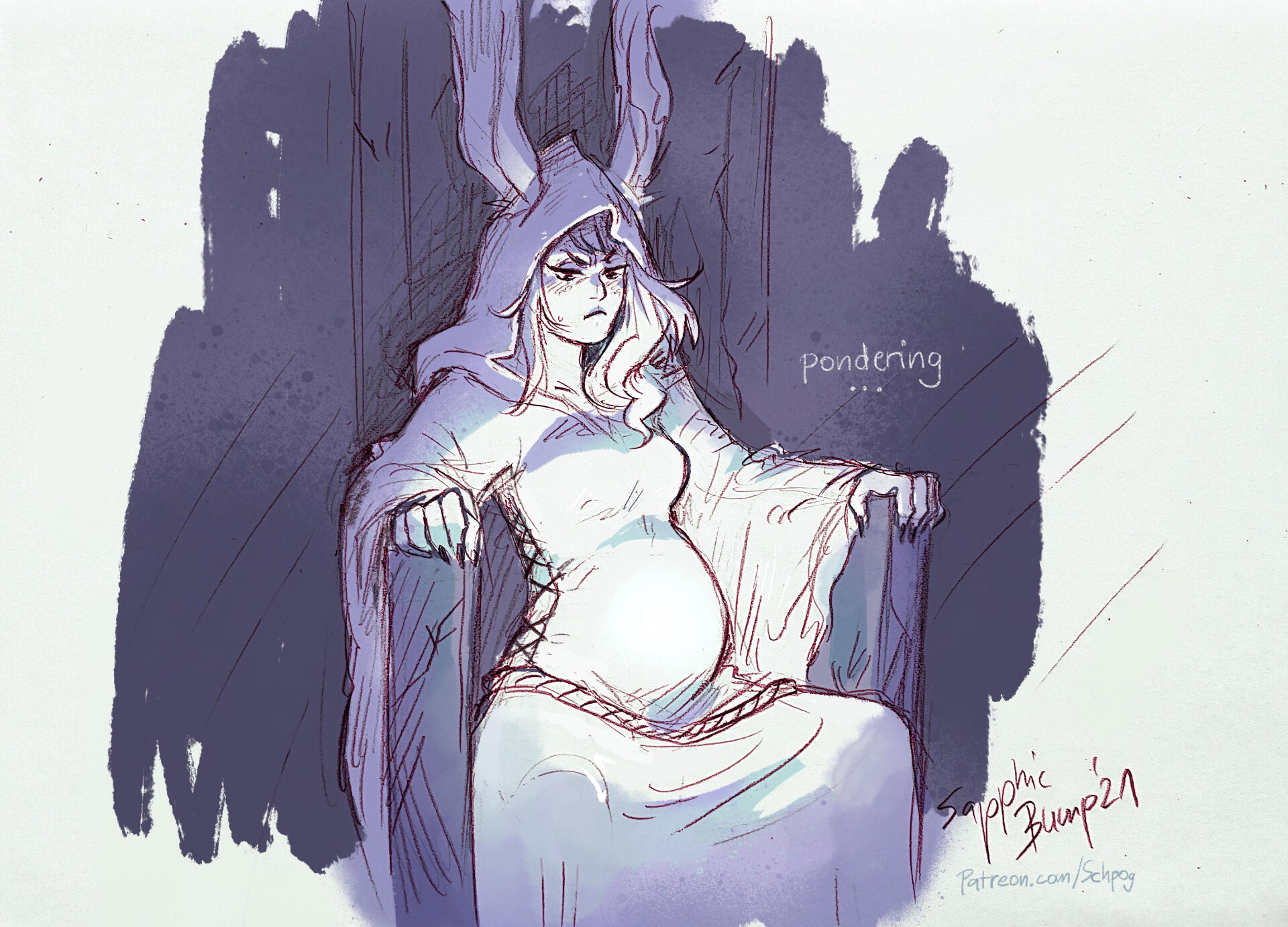 A lovechild of my livestream viewers and my partner, basically? It's my girlfriend Rose/Glasmond pregnant, usually in different AUs.So far, these consist of: