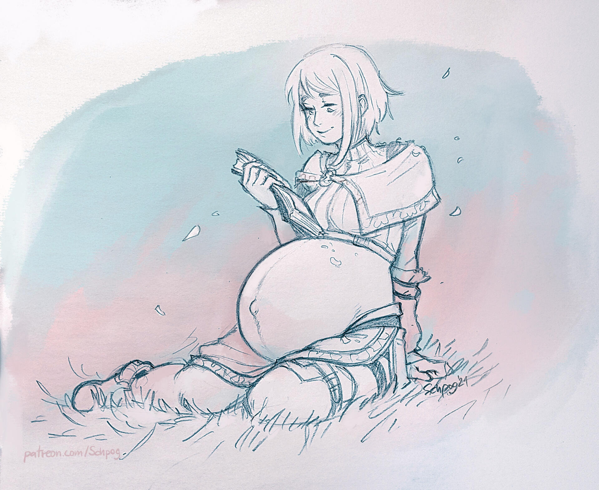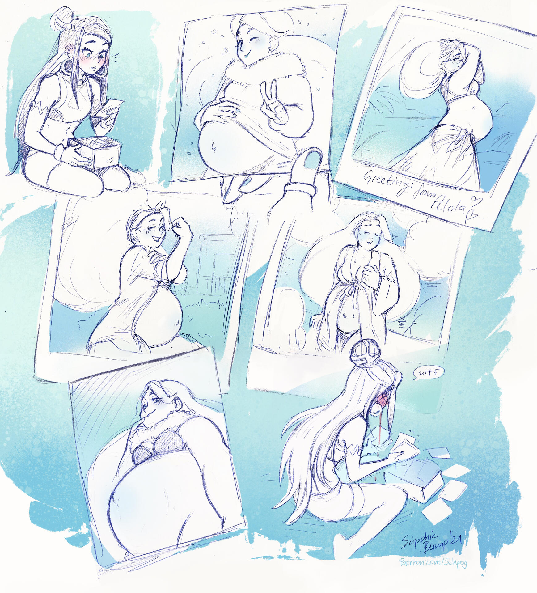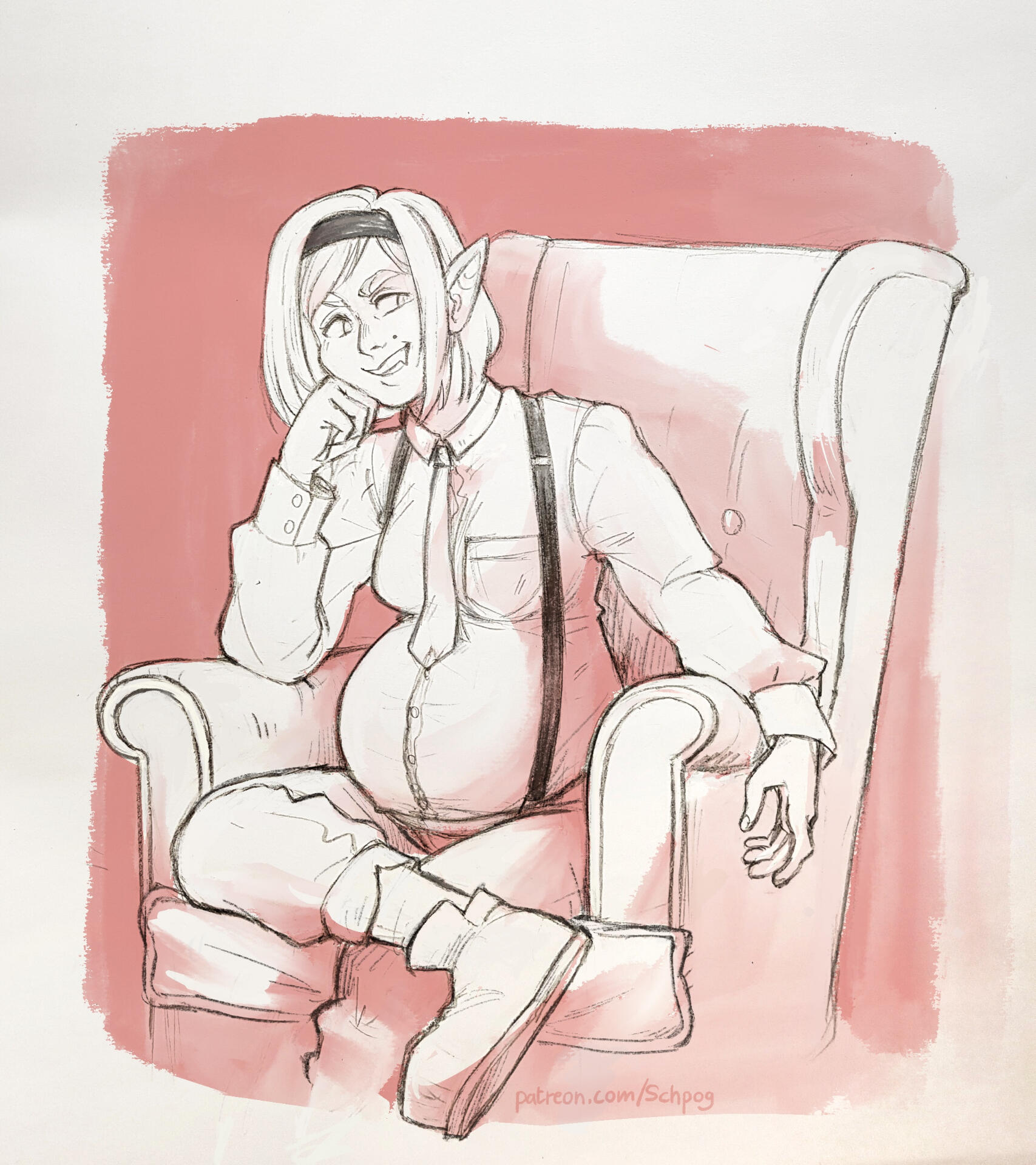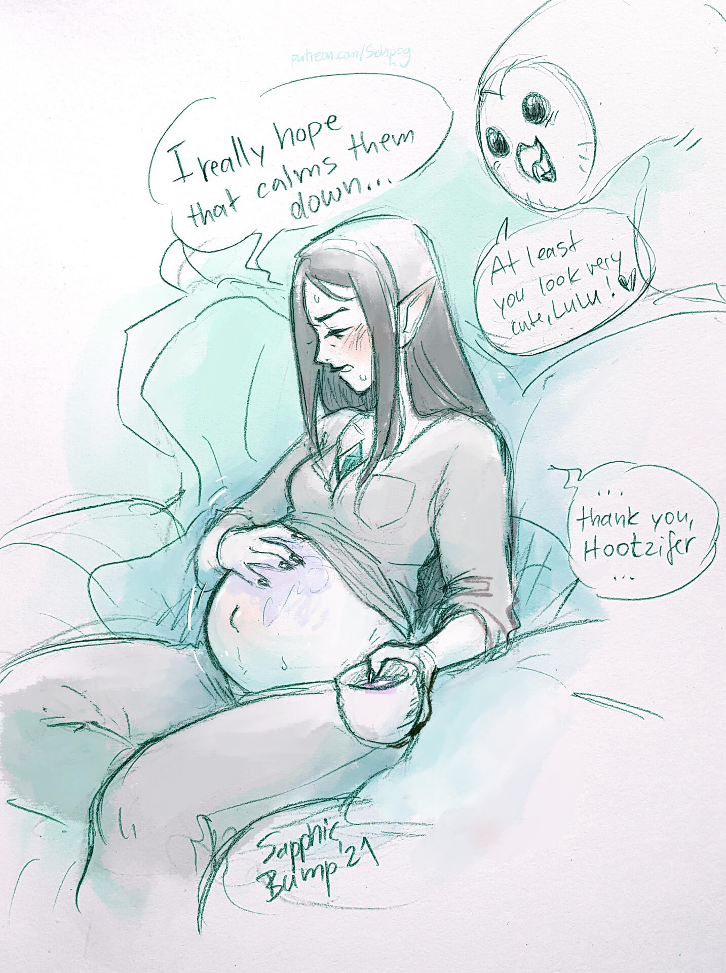 A lovechild of my livestream viewers and my partner, basically? It's my girlfriend Rose/Glasmond pregnant, usually in different AUs.So far, these consist of: