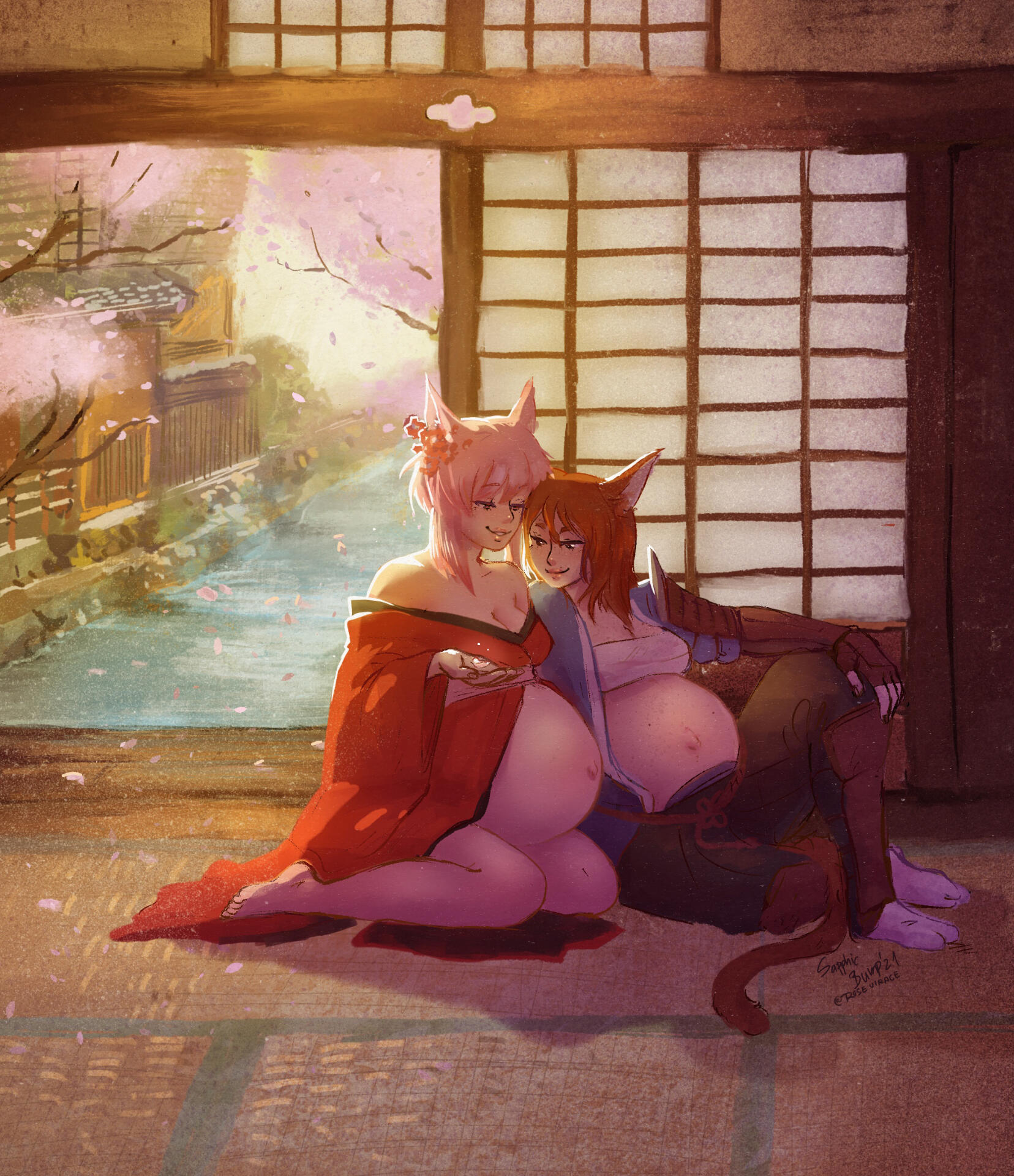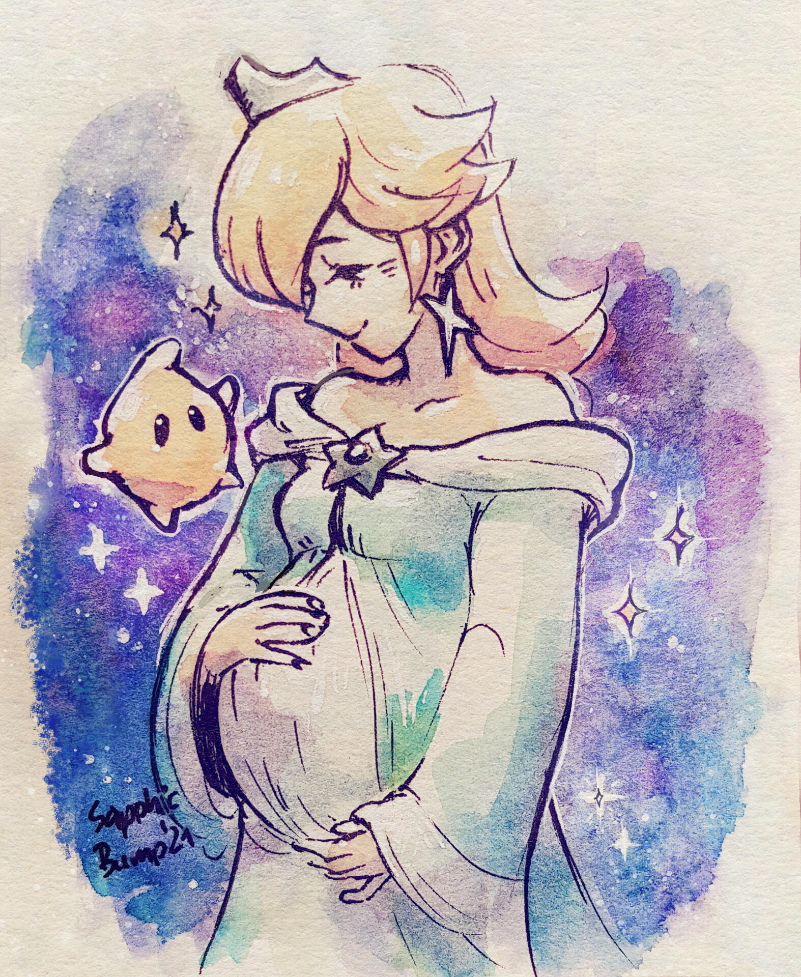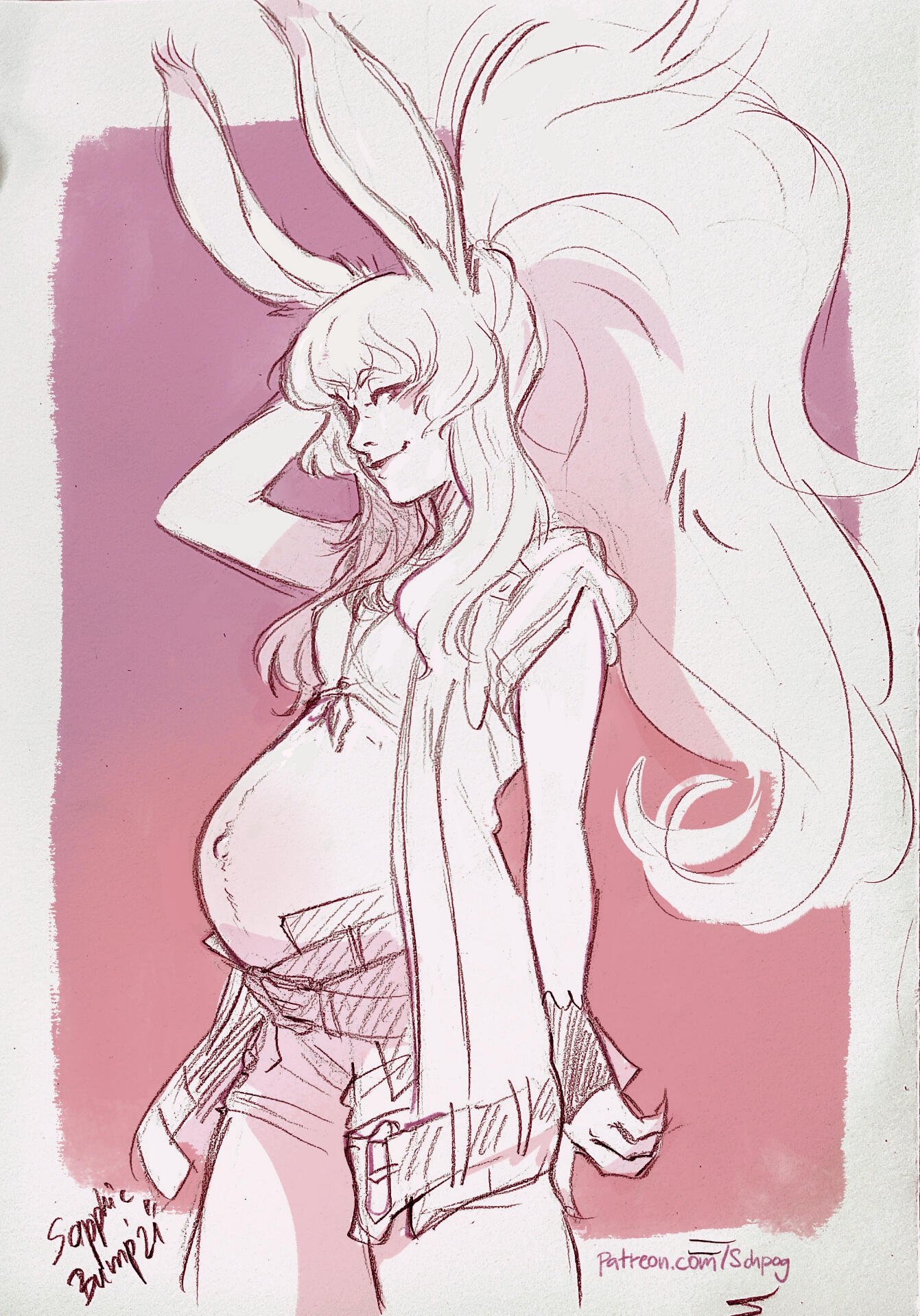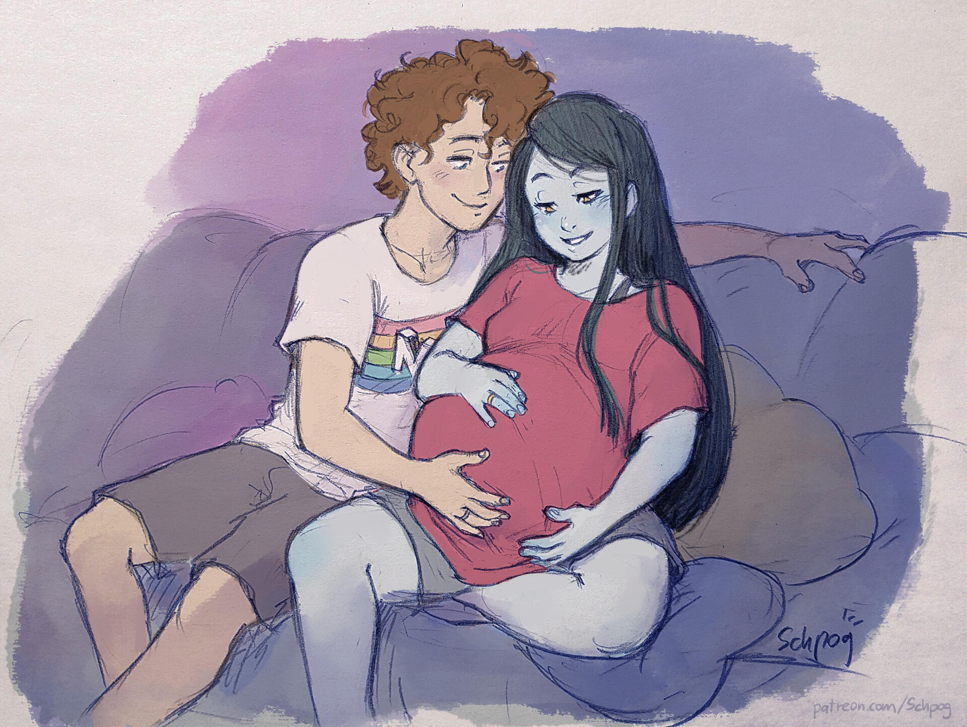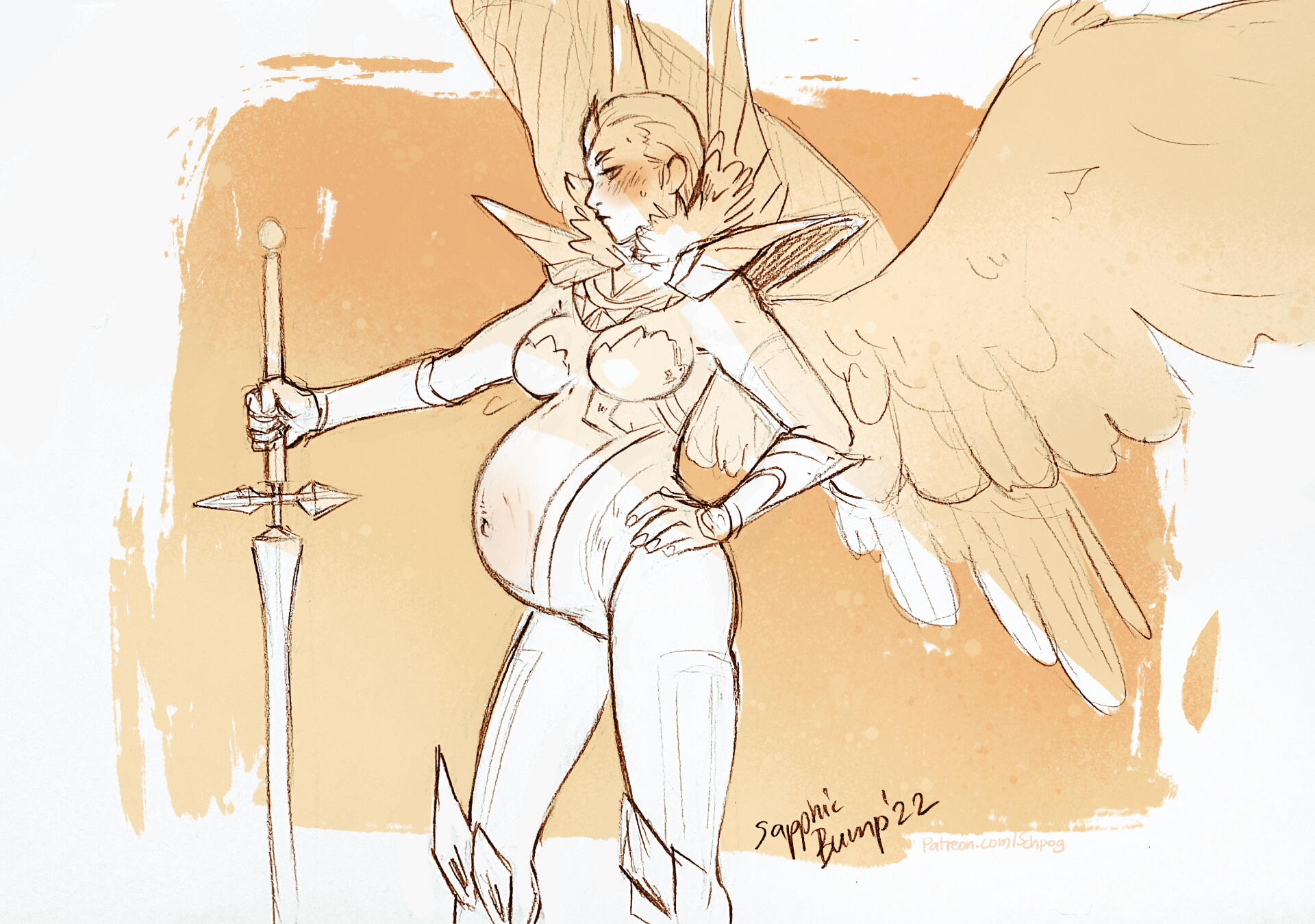 A lovechild of my livestream viewers and my partner, basically? It's my girlfriend Rose/Glasmond pregnant, usually in different AUs.So far, these consist of:
