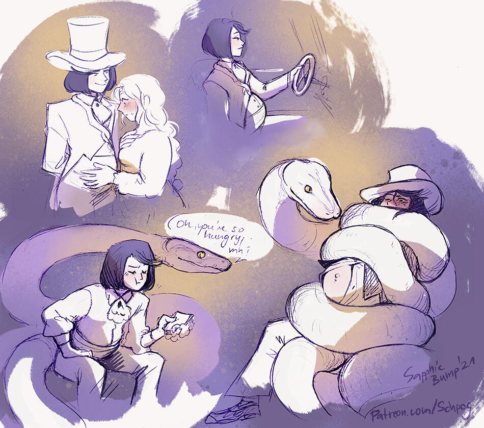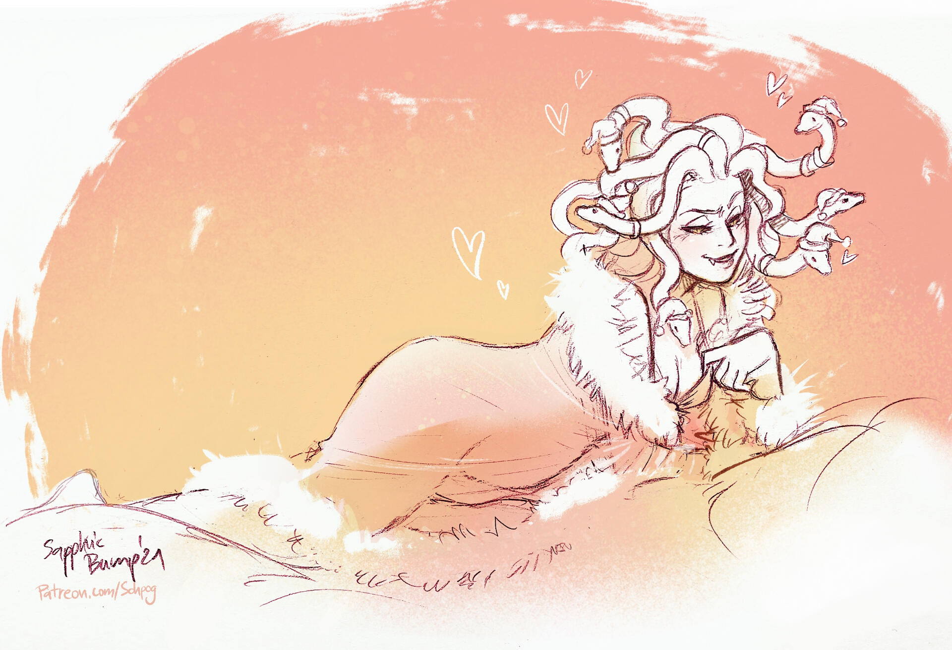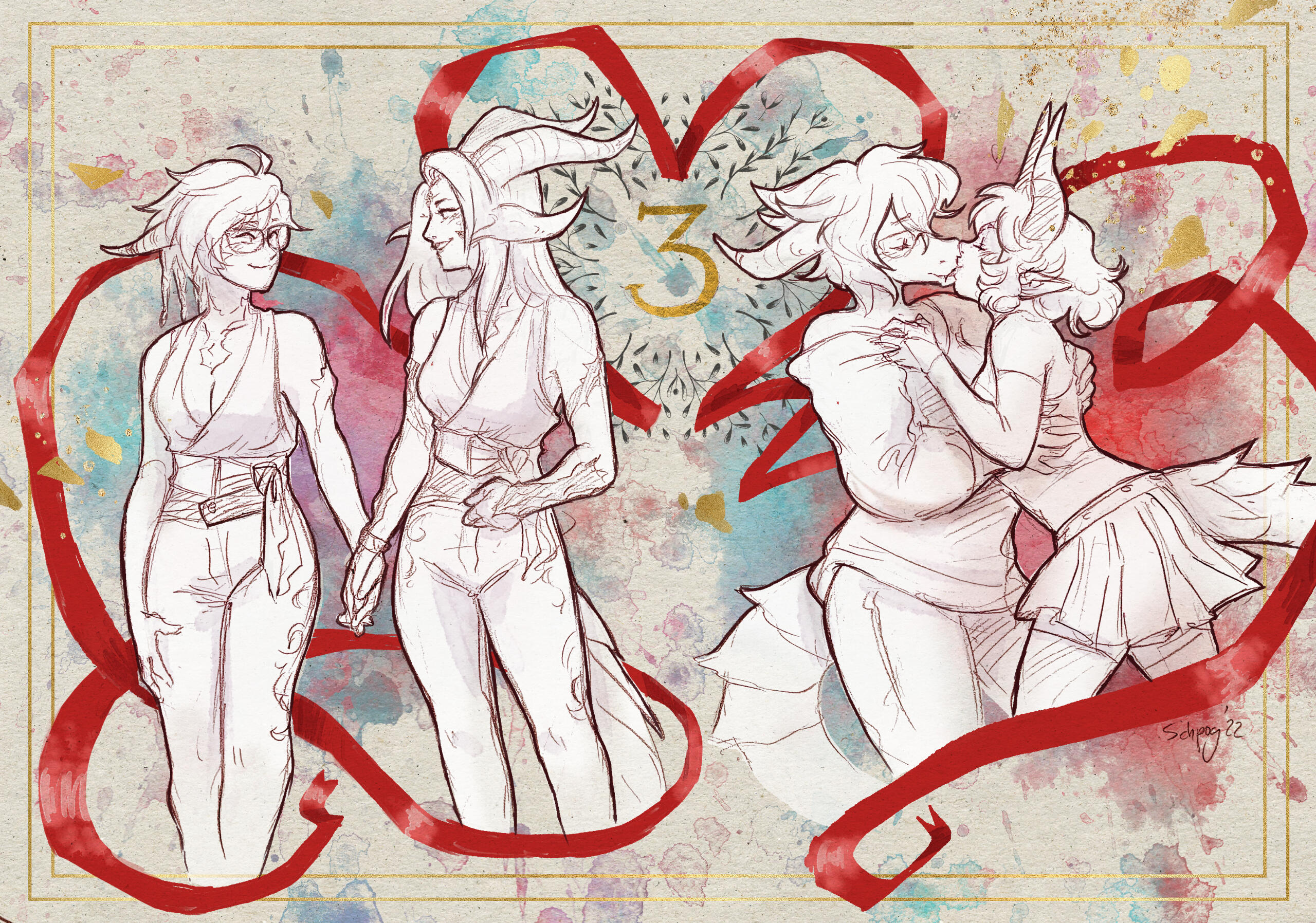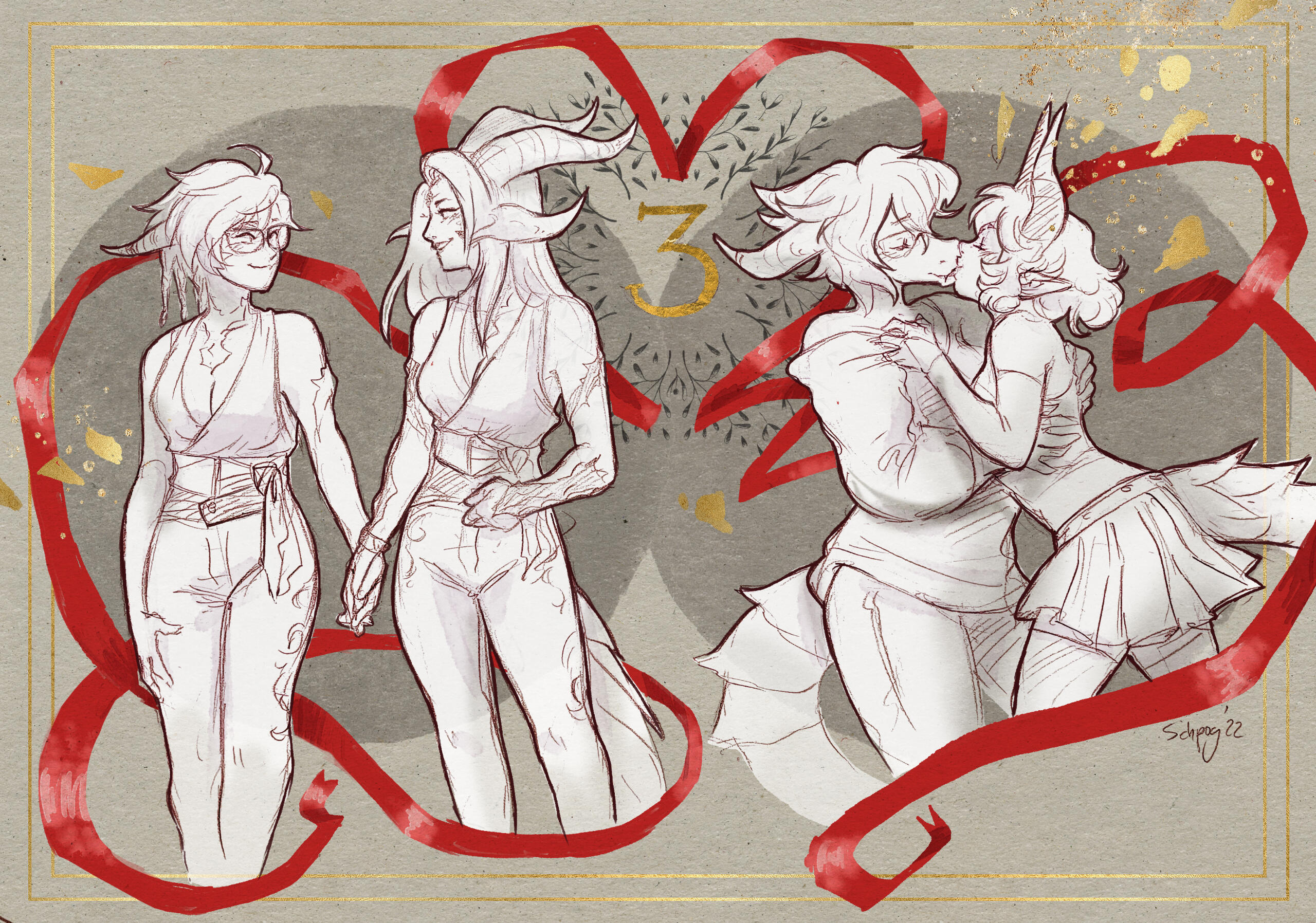 I'm Schpog (aka SapphicBump), I live in Munich/Germany with my girlfriend and my dogs and my main job is being an illustrator. I love everything sapphic.If you want to contact me you can do it here.