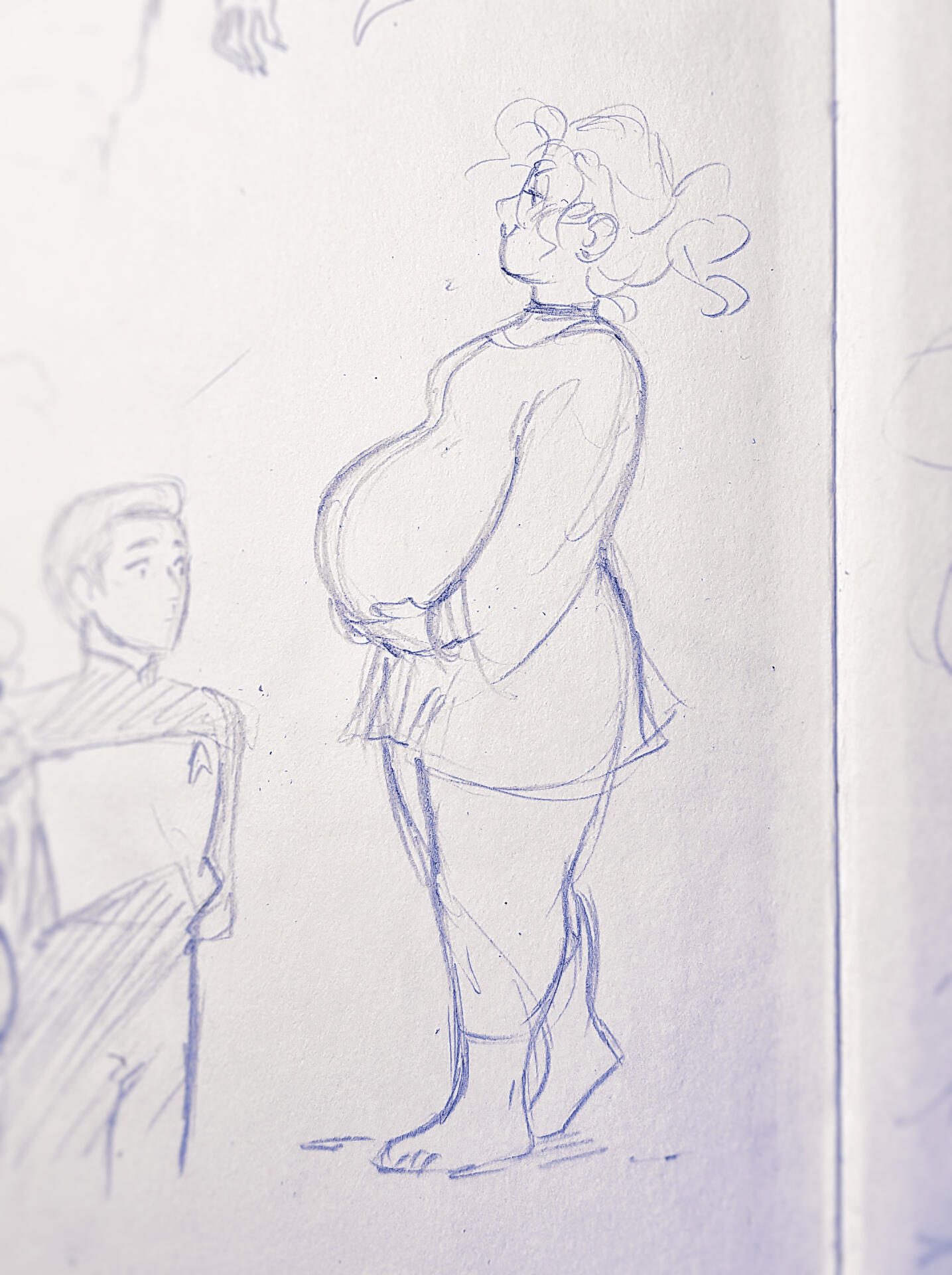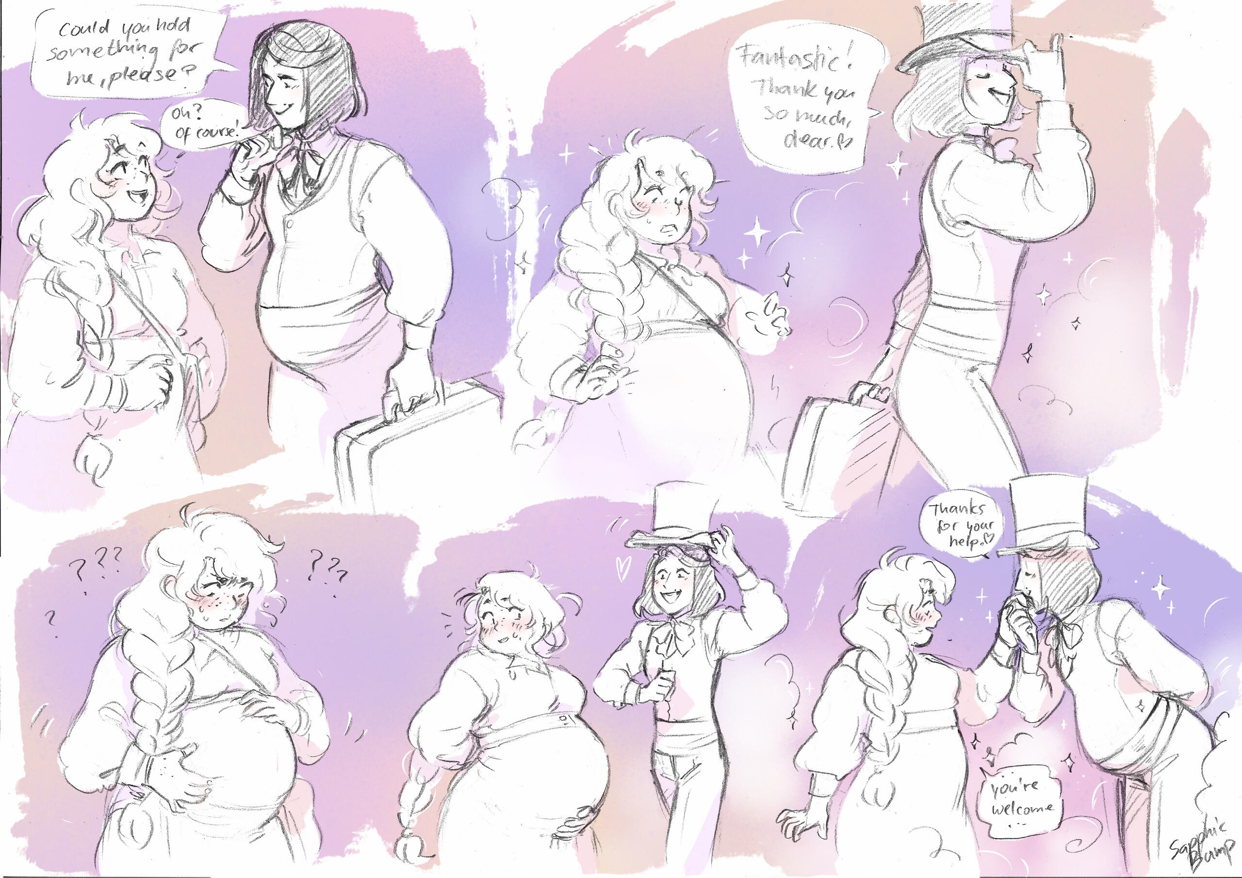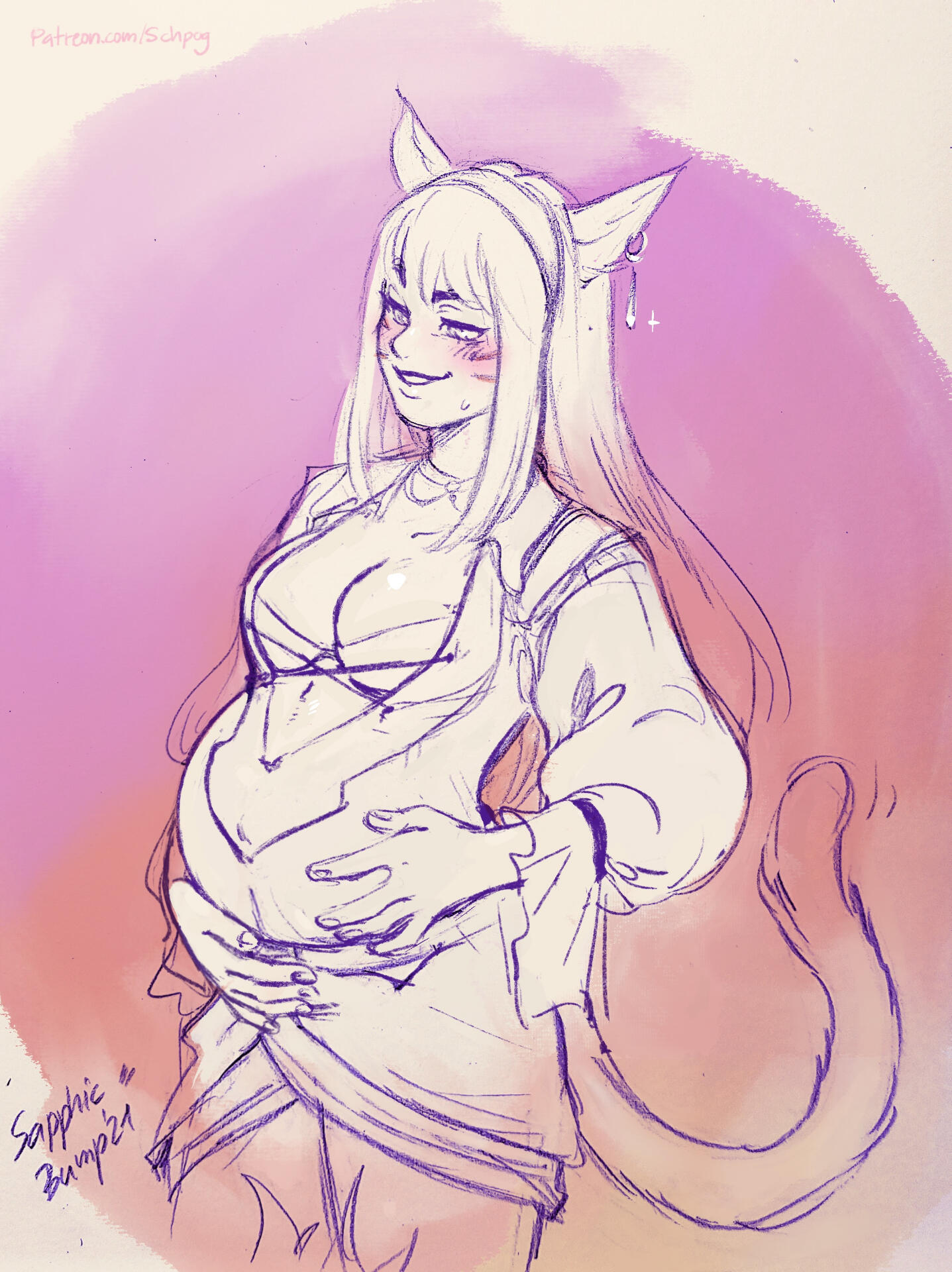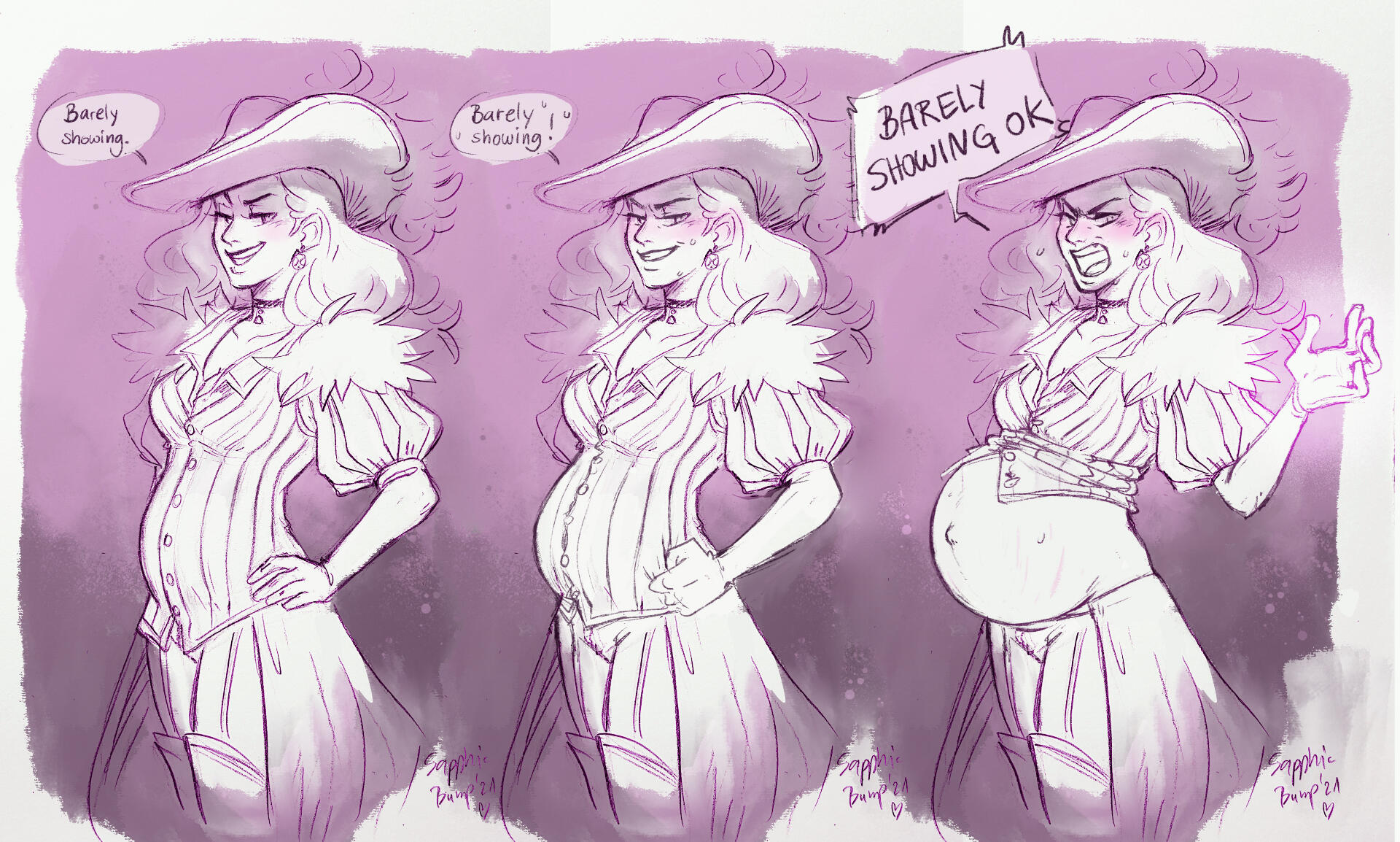 Charlie (full name Charlotte) used to stuff her shirts once she found out people can get pregnant, with around 7, for fun (way before she knew she was a girl). She always used to say that she will be a beautiful pregnant woman one day, but faced a lot of early childhood transphobia in response. Due to that it took her so long to come to terms with this. She continued to do it in secret with tights and a soft pillow occasionally, until one day her boyfriend saw it accidentally. She was in complete shock of course. But he fell in love even more, instantly, because she looked so adorable and wholesome. He then was the one gifting her the silicone pad to begin with! He also encourages her to be herself overall. She's not outed anywhere except in front of very very close friends. She's currently too afraid for hrt, but her boyfriend gives her strength to become a little more herself every day.She's a computer scientist and loves her job itself, though her colleagues are rather conservative and often make her feel uncomfortable with ciscore comments.