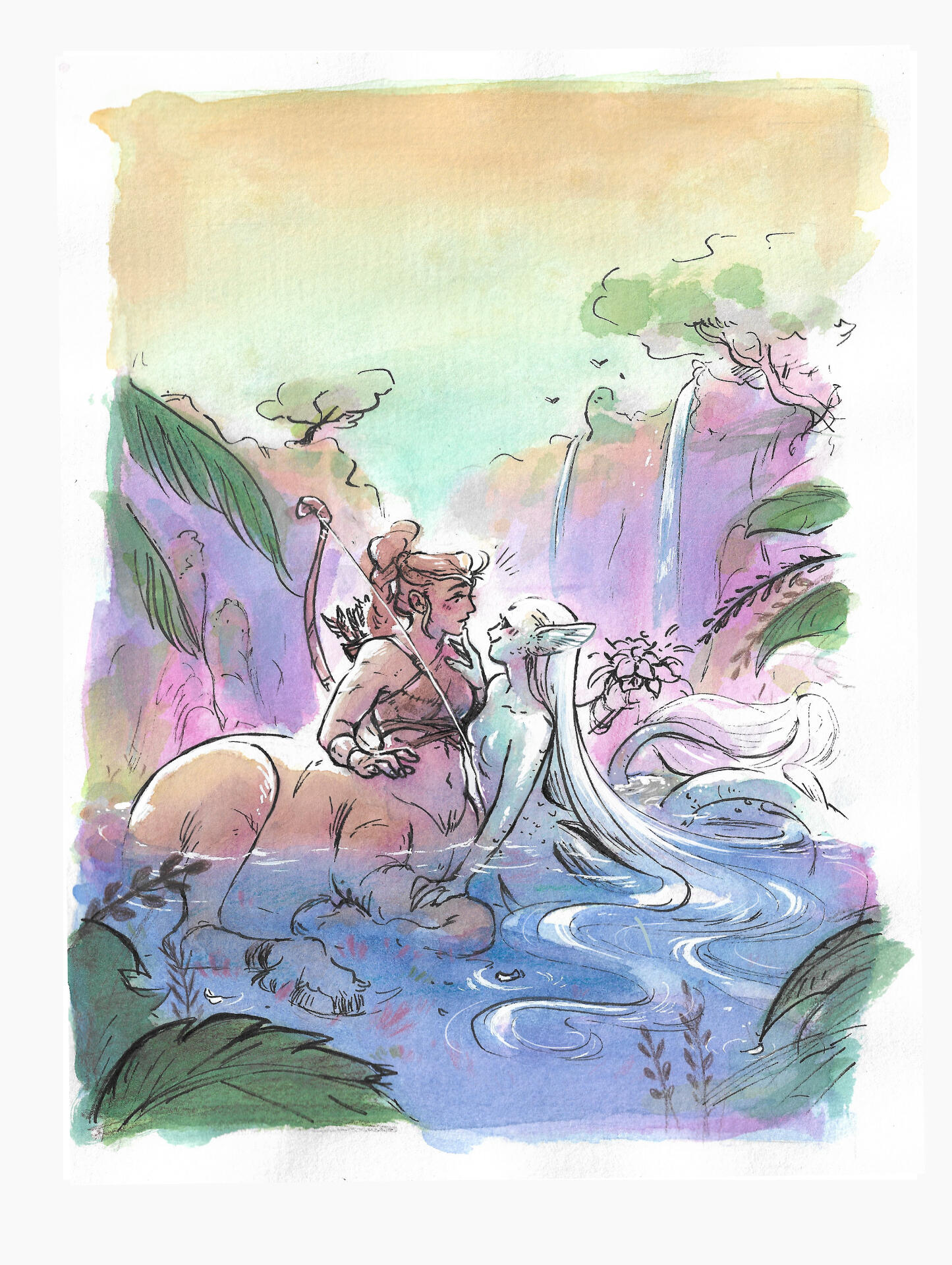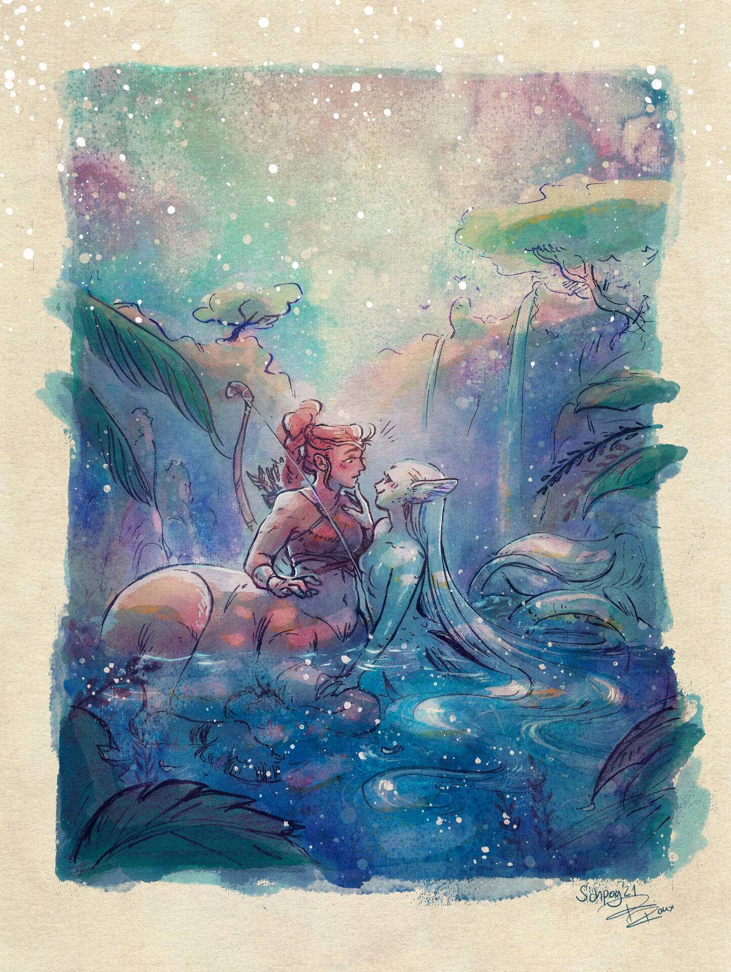 A traditional dreamy option for those who value physical originals or watercolors! A sketch will provided before inking / coloring. The estimated price is just for one simple character without any background - please contact me for a no obligation quote for your individual piece.