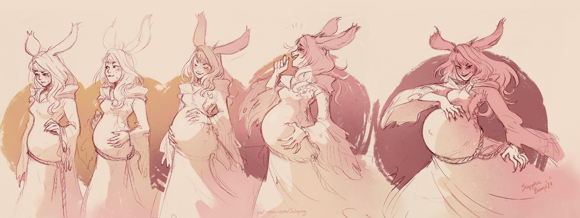 If you want, you can get your P type commission animated! There are two different kind of animations. Type A works well if you like it to look as if the belly grows in real time, type B works well if you want to show the different stages. Especially recomended with changing arms and expressions. Can't decide? You can get both for only 10€!