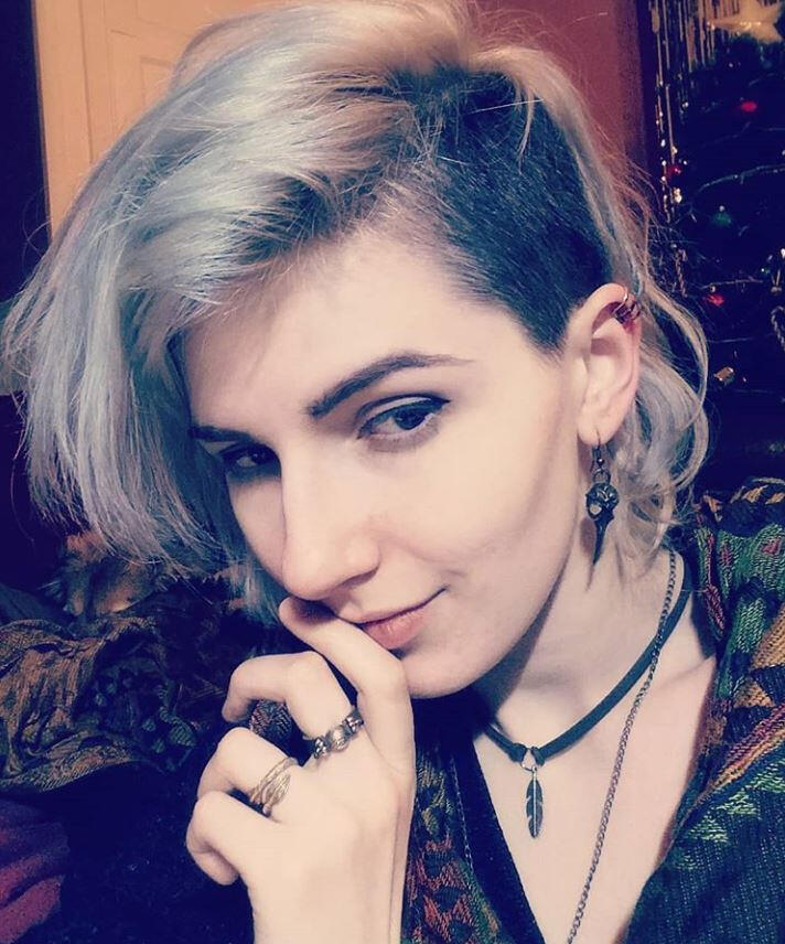 She loves mixing teas, birdwatching, LARPs & DnD, horror and indie games, ASMR, painting and sewing (especially cute dresses). She collects eevee figures and plushies. Even though her family is not supportive of her, she still loves them. Her cat Copernicus.Hates: